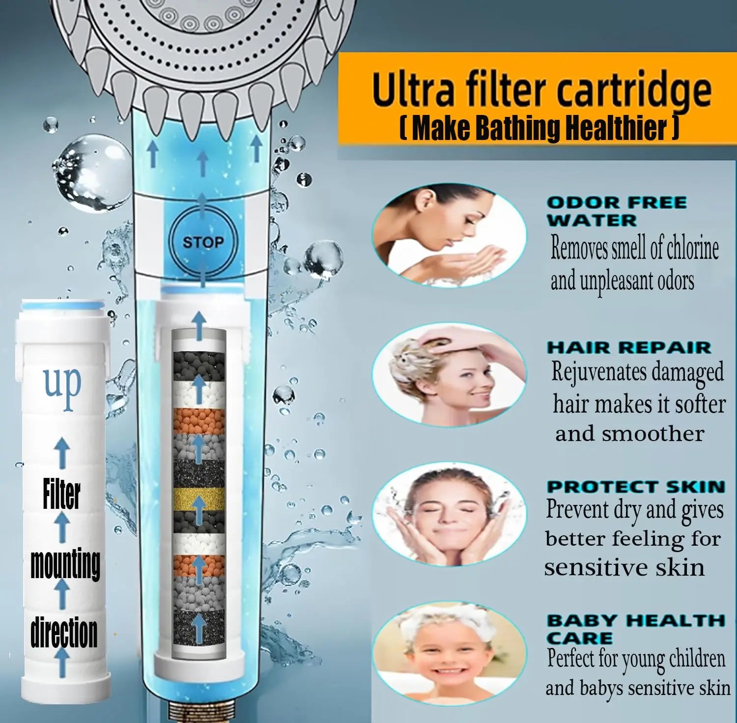 • Connection Size: Standard G1/2" thread (fits most shower arms/hoses)