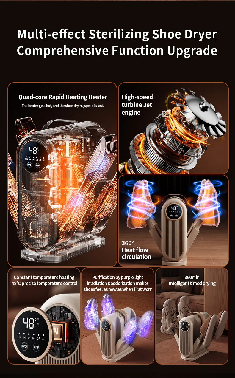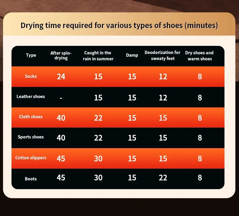 With efficient warm-air circulation and built-in safety protection, this shoe dryer ensures quick drying without overheating or damaging your footwear. Say goodbye to damp, smelly shoes and enjoy all-day comfort with every step.